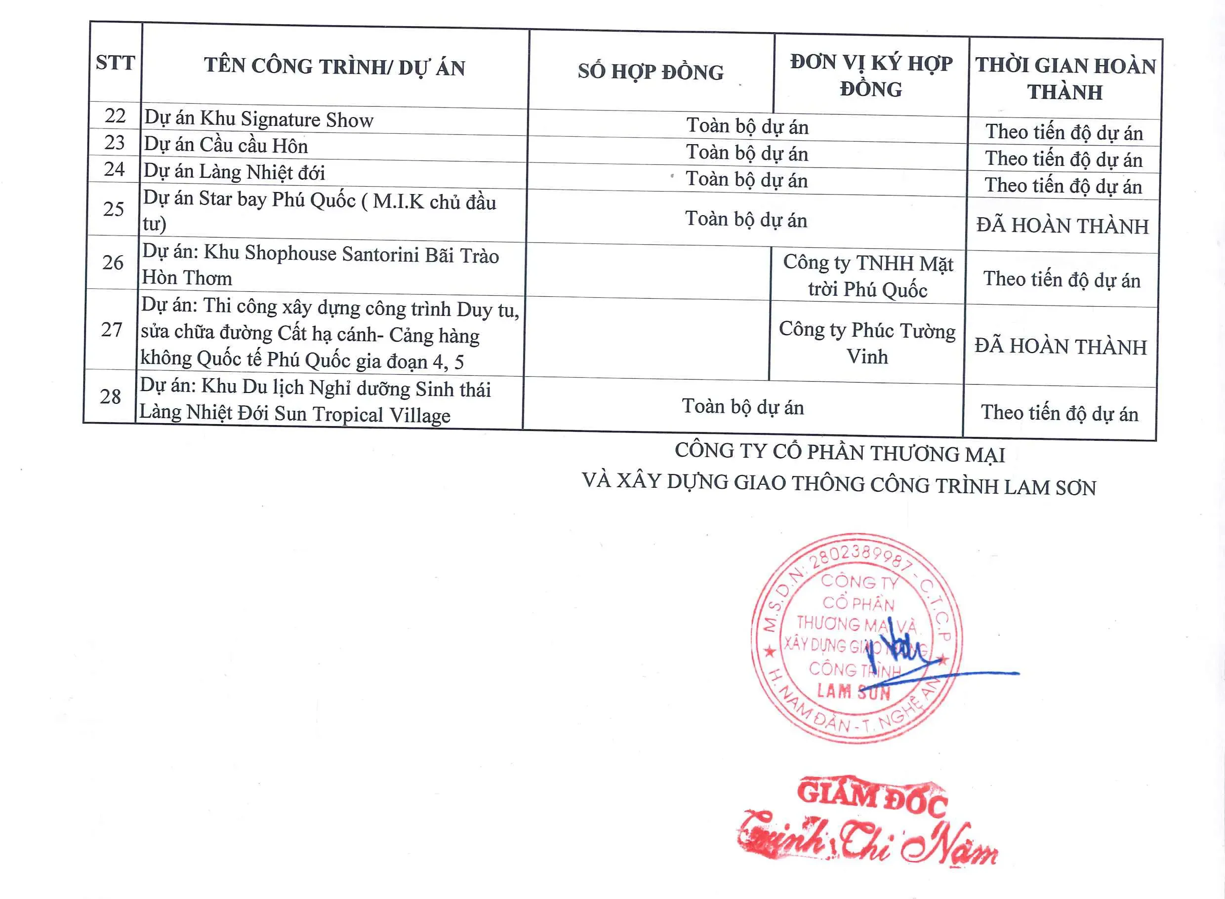 CÔNG TY CỔ PHẦN THƯƠNG MẠI VÀ XÂY DỰNG GIAO THÔNG CÔNG TRÌNH LAM SƠN